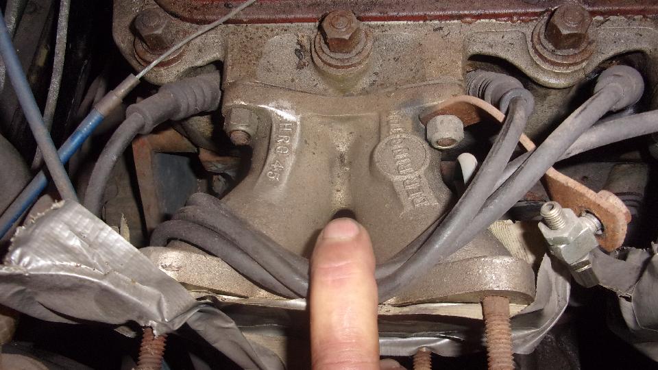 Now we get back to the vintage Mallory Dual Points distributor, and spark timing was not right. Clockwise rotor rotation, turn body clockwise until one cap clip hit the cylinder head. Turn body anti-clockwise until the condenser hit front of the engine. Half way between, the rotor was pointing at wrong spark wire. So pull all HT wires out of the cap and move them around one position until the rotor points at #1 terminal with crankshaft at Top Dead Center. Then with a periodic sniff of starting fluid, we got an occasional pop, but no start.