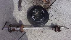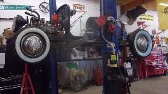 Guys are back from Amelia Island, and I'm mostly caught up with internet and web site grunt work. Back to Elliott's place for some more work on the GT6. Started with the worst sounding job first, get the brake drums off and get the car to roll. While it was a general pain, it wasn't as bad as anticipated. Forced torque, hammering and prying didn't work, but a slide hammer with a good hook did the trick.