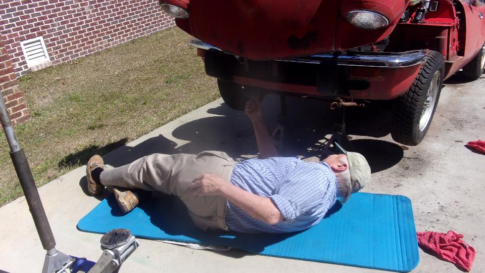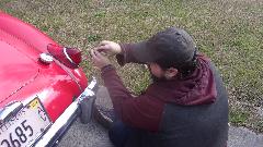 Appointment changed from late am to early pm in Columbus, Georgia, and only two cars here to tinker with today. The owner of the white car, Steve Bettes, had purchased a new side marker light and was beginning to