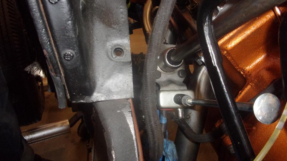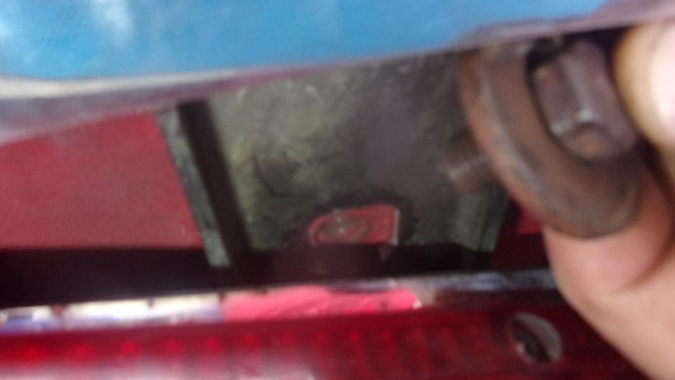 So out came the tail light assembly (in four pieces), and ultimately off came the left bumper section to repair the damaged thread up front. That's about the time it dawned on me that these are British Standard fine thread fasteners, and I don't have any spare bolts or a thread tap. Since the thread was already buggered, I (we) decided to use a 5/16-24-UNF tap to clean up and re-tap the thread to use a standard UNF bolt. Follow a couple hours of cursing and swearing when I couldn't get the tap to bite and begin cutting, even though I had the pilot hole drilled out 1/64 inch larger than the designated size for a tap drill. There was some creative grinding of a taper lead-in on a new bolt, some forced wrenching, more fail of the tap to work, and more forced wrenching. Keep repeating, "Failure is not an option", and some time later the left bumper section was reattached.