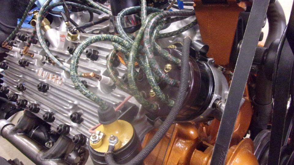 Get out the timing light, get one flash and then nothing. Not long to figure out the 12-volt timing light doesn't work on the 6-volt battery. So fetch a 12V battery, set it on the floor, connect the timing light to the 12V battery, and connect a thin jumper wire from 12V battery positive terminal to the car frame to provide common grounding for the 12V and 6V (positive earth) batteries. Think about that for minute. Not sure, but it may have worked without the common ground connection between batteries.