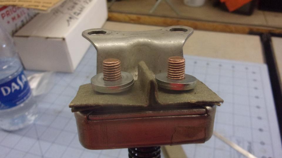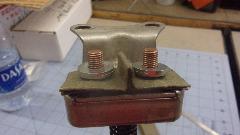 First problem today was lack of cranking starter motor. Attempted cranking using a large jumper battery box for power did nothing, with power supply voltage dropping from 12-volts open circuit to near zero as soon as the load was connected. Set that gadget aside, and hook up a real battery. Voltage check says the 6-volt battery is likely okay with at least 5 volts output when cranking, but only seeing 3.5 volts at the starter motor. A bit of circuit tracing with the volt meter soon revealed a loose cable connector at the starter switch, due to attempted use of corrugated cardboard for an insulator sheet. No, no, that has to go.