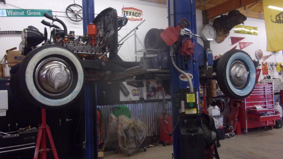 We came here to check out his 1932 Ford Cabriolet with flat head V8 engine (with some performance upgrades). He contacted me some months back because of some problem with a very vintage Mallory Dual Points distributor (as he found some Mallory information on my website). With some email messages and pictures at that time, we solved an issue with miswired points and condenser, restoring spark to the system. But since then he has not had it running due to other problems.