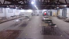 Had an appointment for setting up a couple buildings for the All British Swap Meet and Autojumble to be happening tomorrow. Dropped into the DuPage County Fairgrounds complex at 5:30 pm, had a short delay while some other show was still clearing out of one of our buildings. Otherwise taping out floor spaces and setting up tables and chairs went pretty much as planned. Good start to see the place ready to accept vendors and visitors in the morning. Three halls with an echo. Wait till you see what it looks like by mid day tomorrow.