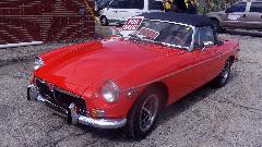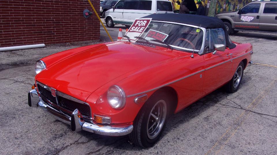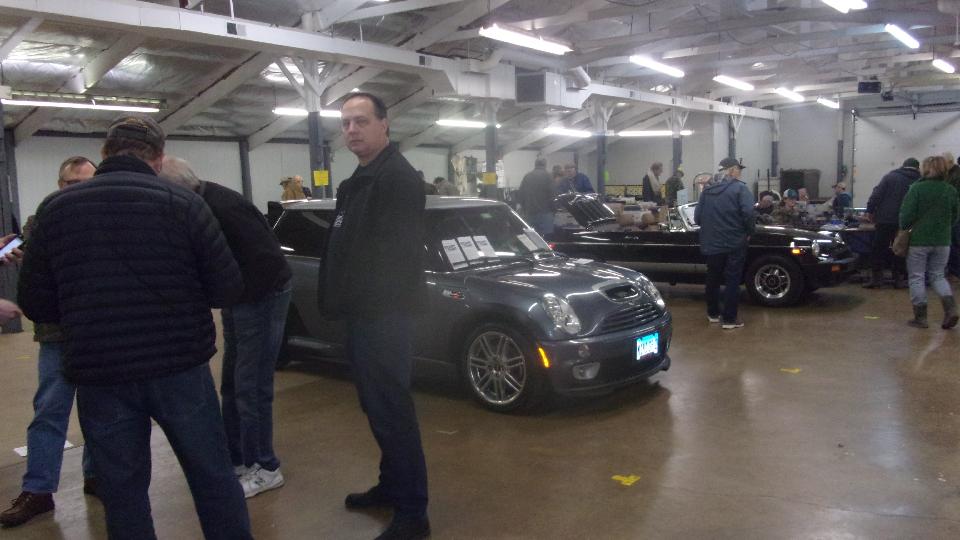 The "modern" Mini in the car corral was one of a limited edition factory rally car. The red MGB outside was for sale, "$10K OBO".
