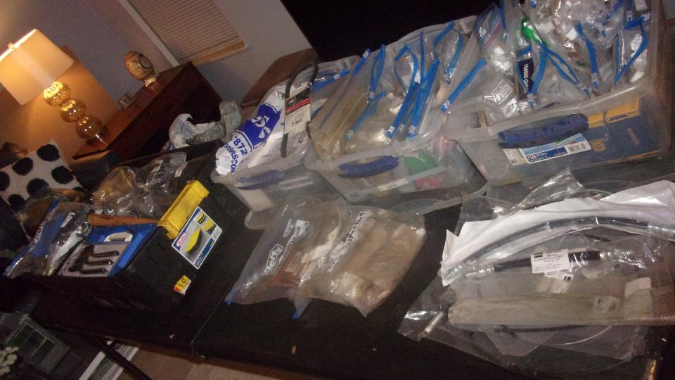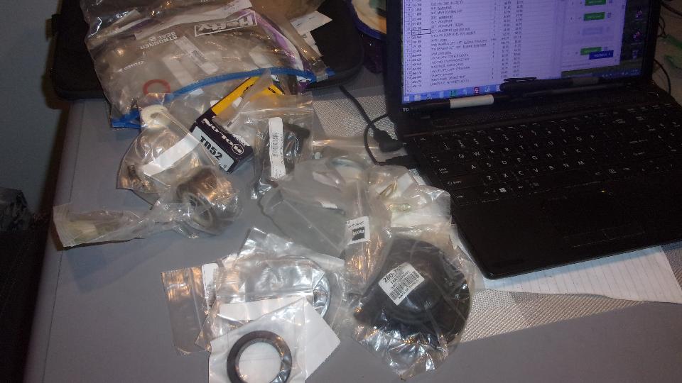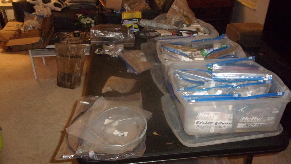 parts orders from Moss Motors, maybe as much as 300 line items, with parts from each order still sitting