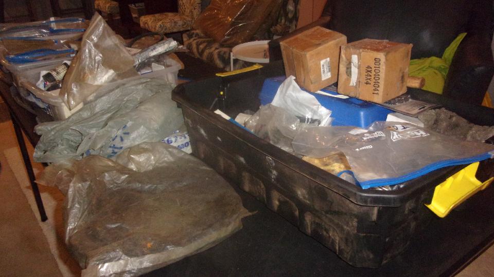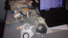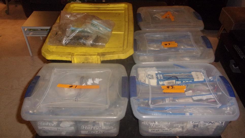 Then we pulled up one bag of new parts at a time, dumped it out next to the computer, and proceeded to ID and file away one part at a time until there were no bags left. We had a rather late start in the evening, and then the whole job took longer than anticipated (of course), until we were finishing up pretty tired at 5-am. Now the tote boxes are overstuffed, so we need to buy one more box to thin it out a bit.