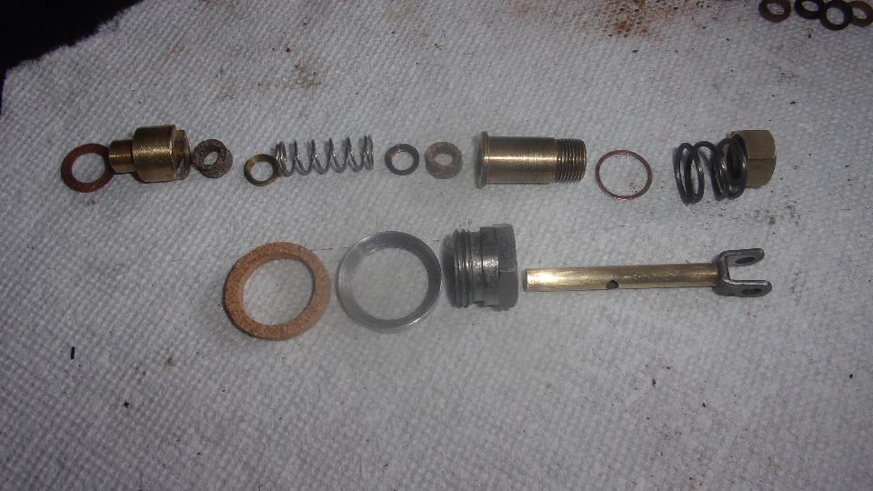 The new cork jet seals (little cork donuts) were sort of malformed, hour glass shape, larger at one end than the other, looked like they might have been stamped out of flat sheet cork stock. They stood rather tall and didn't fit into the gland washers vey well, so it was a good time to change to my favorite Teflon O-ring seals, two rings in place of each cork seal.
