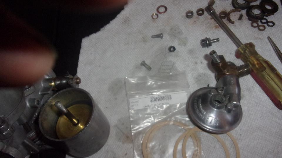 Busy again today, disassembled a pair of MGA 1600 type SU carburetors for inspection before rebuilding. Very tight fasteners, some rust in the threads, lots of fine rust dust inside that likely came from a rusty fuel tank when it was last in service. Fuel jets were nicely centered with the metering needles, so no wear there, but definitely need cleaning. All the seals were hard, hard life and long time since used. Owner is off to do some cleaning, and I think I have all the required parts, so should have these back together in a day or two.