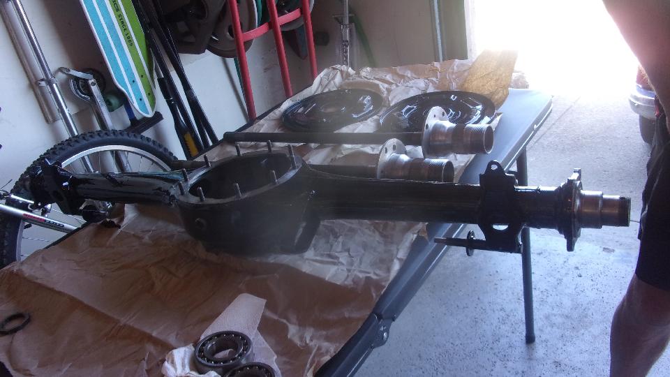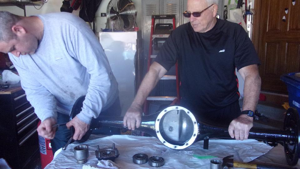 Off to visit Marc Chapman in Westerville, OH today to do a little work on the rear axle asssembly for his MGA 1600-MK-II. Marc had already cleaned everything and painted the axle housing, brake backing plates and rotating bearing hubs, so we were off to a good start. Marc's father also dropped in to lend a hand He used to own an MGA, back in the day.