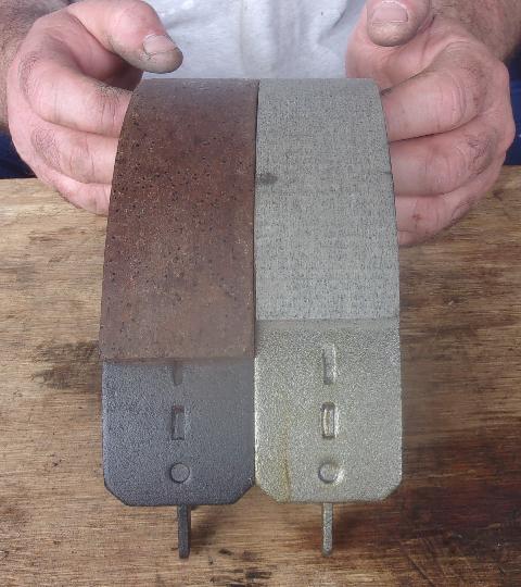 tab to align the brake adjuster mask, and no inboard flange to align against the backing plate. Not sure how old these parts are, as they came from inventory procured from someone else. After due consideration, we salvaged the end caps from the old cylinders to install on the new ones. That allowed us to go ahead with installing the new brake shoes and getting the drums back on.