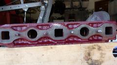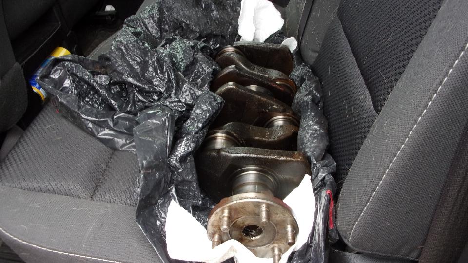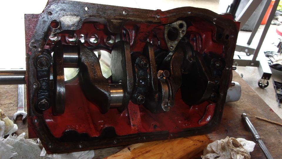 Not long to knock down some lock-tabs to remove the big end caps and pistons one at a time, finding nearly new big and bearings, and the crank journals looking surprisingly good. Main bearing nuts off, caps out, and remove the crankshaft, and the main journals also looking pretty good. Time for a delivery run, put the engine block, crankshaft, cylinder head and flywheel into the truck, and off the engine shop for a little presentation and negotiation. Ridge in cylinders, obviously needing r-bore. Crankshaft might polish up okay without regrind, but will measure it to be sure. Cylinder head will get hardened steel valve seats, valve job, maybe a couple new valves if needed, and maybe shim some springs to correct set-up pressure. Flywheel will be machined to remove 8 pounds, bringing it up to later production 20 pound spec (and balancing of course). Shop owner was happy to see we had reinstalled the main bearing caps and removed all of the studs to make his life easier, thinking he was dealing with someone who knows what they are doing. That's nice. I think we will get on just fine here. Backlog of a few weeks in the machine shop, so expect it to be done sometime in late July.