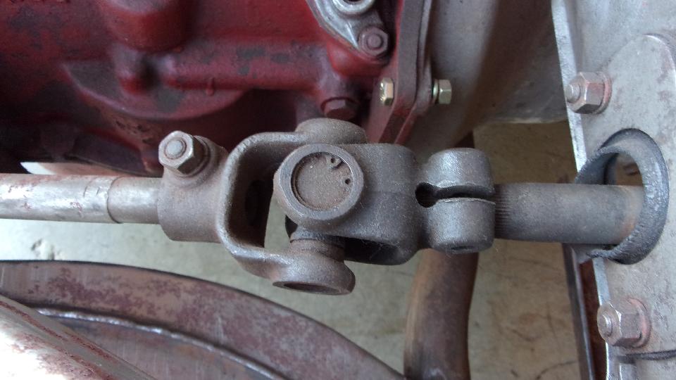 Then we fought with the steering universal joint for a while with penetrating oil, pulling hard, prying with a couple big screwdrivers, and finally got the steering column out.