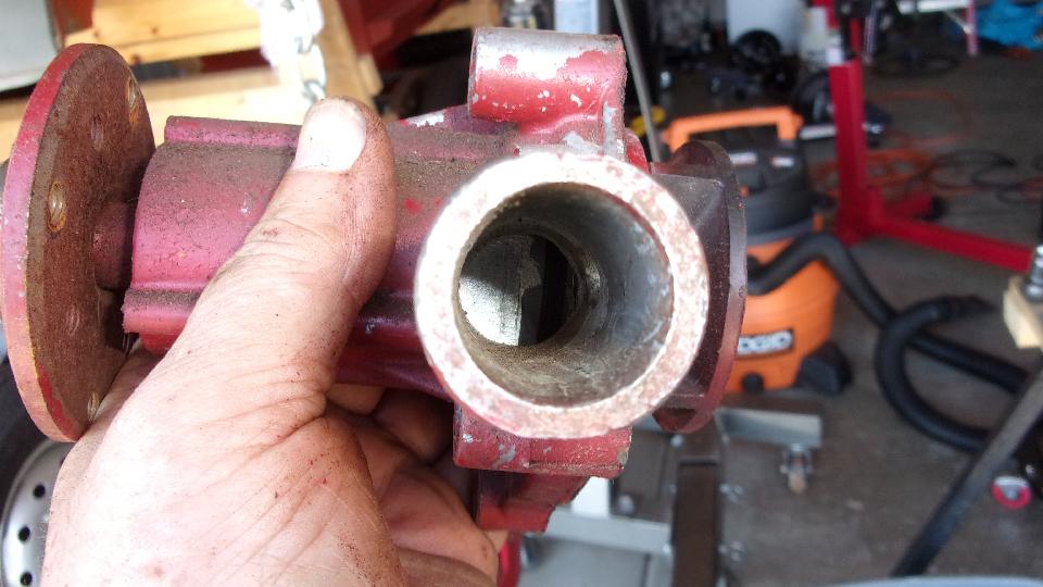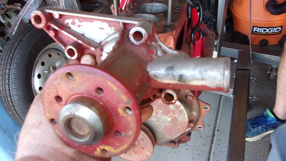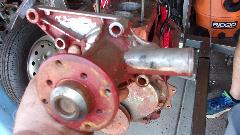 I spotted the aluminum water pump right off, which raised my curiosity (from prior experience). Sure enough it was mid to late 1980's issue with the 2/3 obstructed inlet port. This was improved a few years later with more open flow area. Either way, the generator mounting arm is thin and weak, tending to break off regularly, so this one will be assigned to the dust bin.