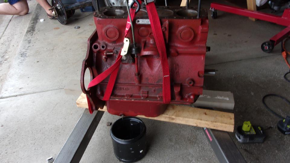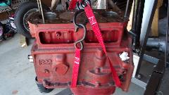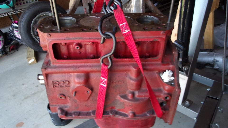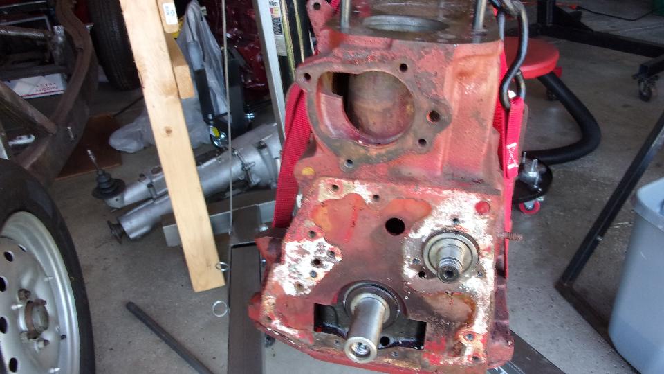 By day's end we had the block pretty well stripped on the outside, still needing to remove the drain cock on right side and the rear plate before going to the engine stand. In the process we found a couple of tab washers that were new and had not been bent upward to locking condition. The tappets looked somewhat the worse for wear on bottom end, so they need to be replaced. That implies that the camshaft may also be near end of life, so will have a good look at that once we get it out. We also found a brand new timing chain and chain tensioner, and maybe new clutch disc, likely with zero miles on them, which reinforces the idea that this engine had some minimal replacement parts just before it was last parked.