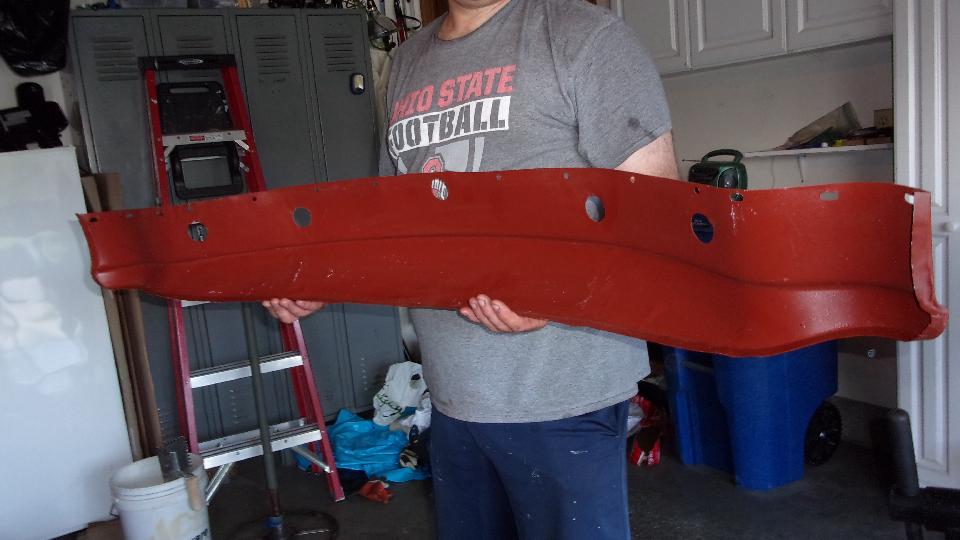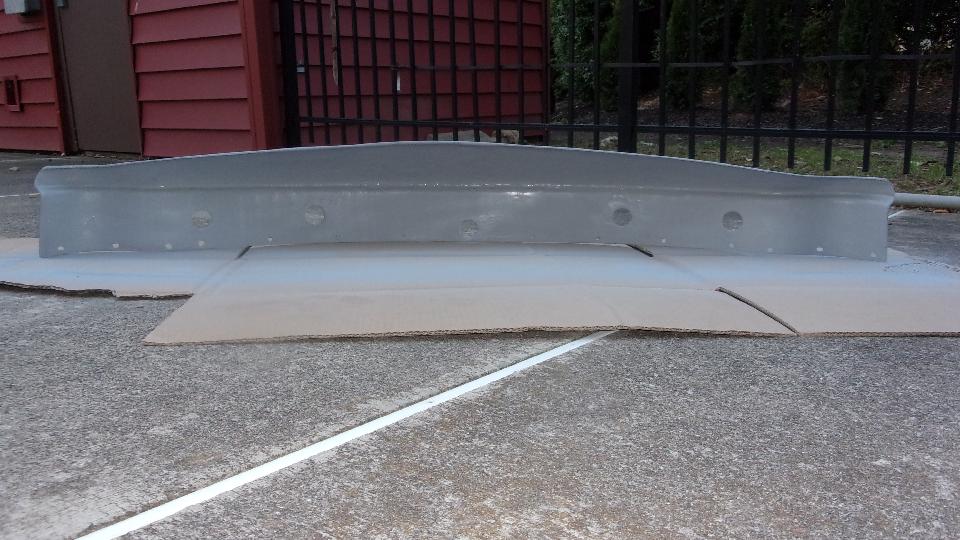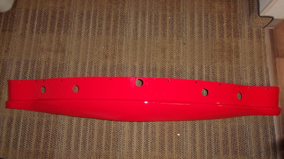 Then back to the shop to pick up the freshly painted valance panel before 5-PM. Jimmy had lightly sanded the primer (on the face side of the panel), shot it with a seal coat, then 2K base coat and clear coat, followed by curing time and buffing. Amazing how fast modern epoxy coatings can cure to reduce shop time. Will have to check later to see how the clear coat and buff matches up to the prior single stage enamel with catalyzing hardener and slight orange peel finish (never waxed).