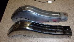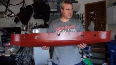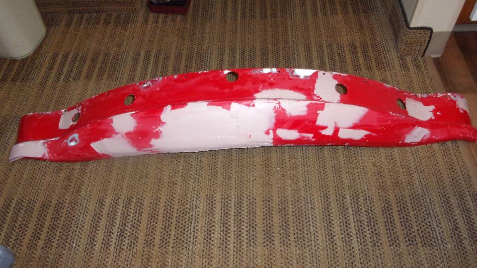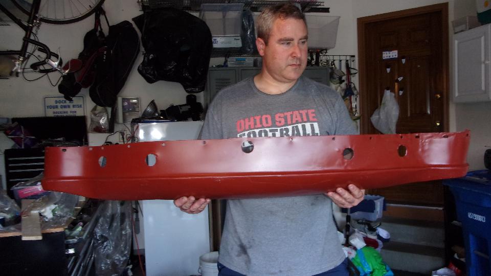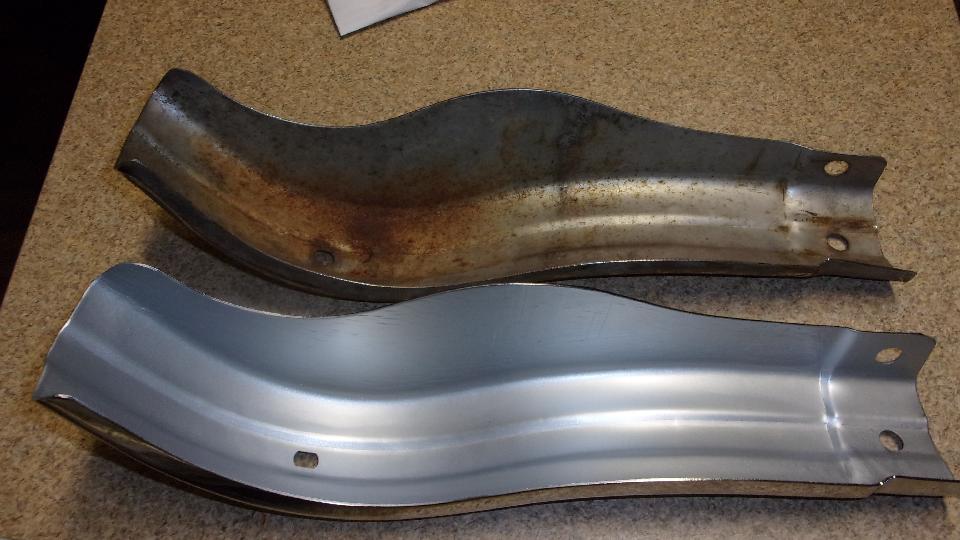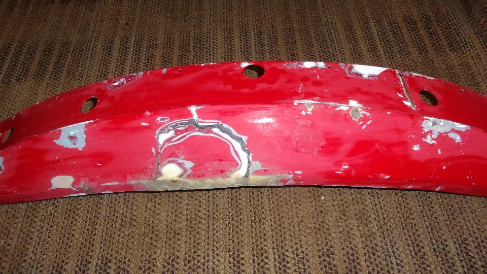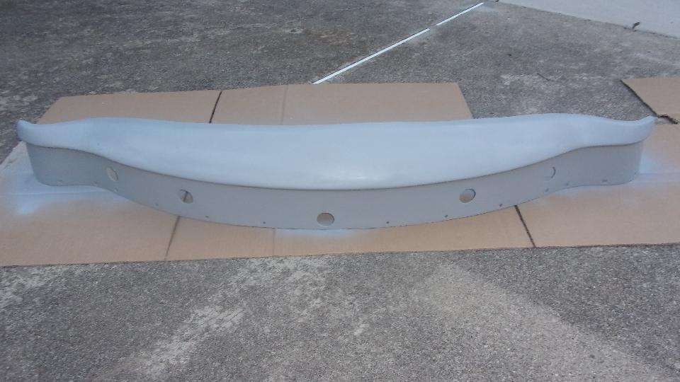 Had plans for afternoon tinkering with friend's master cylinders, but that was cancelled. So I spent some time with my front bumper. We disassembled the old one to see how much of it could be re-used. Already had in hand new 3-piece facebar, two new overriders and packing strips, and one spring bar (one old one still okay). Need to buff down and repaint the license mounting plate and small brackets, and one spring bar. Also going to order up some new chrome bolts, so it is not going to be reassembled just yet.