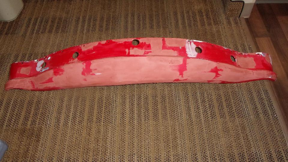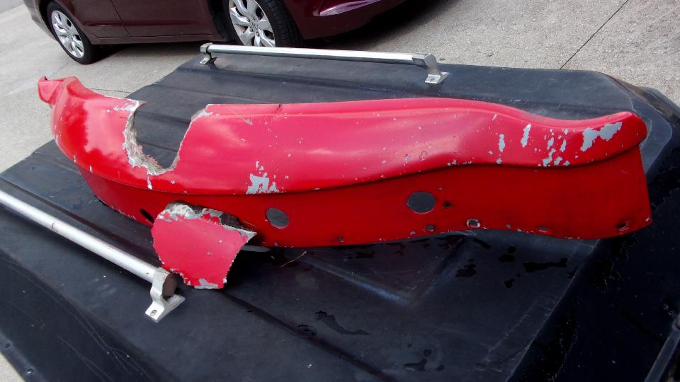 Then it was time to get motivated and work on repairing my long neglected and broken Fiberglas front valance panel. This is the one that was not repaired when the car was last repainted in 2015. I think that makes the last repair and repaint of this piece from the time of body sill replacement in 2008. So after 12 years and a quarter million miles (and hundreds of parking curbs), I guess I shouldn't complain about the condition. This is a tough little part for maybe three pounds of Fiberglas, and not too difficult to repair.