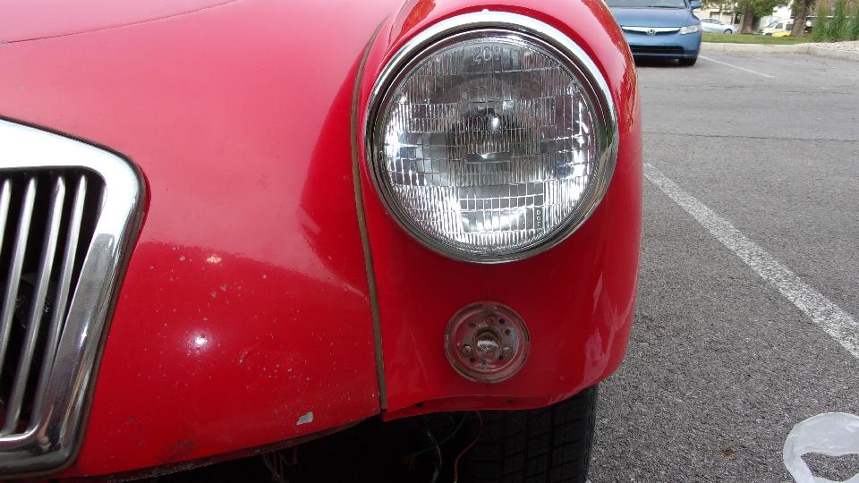If I didn't do anything else notable today, at least I got the new headlight installed, along with a new LF corner lamp. The headlight was only a little tussle, having to clean paint out of the screw threads and out of the clearance holes for the adjuster screw holes in the fender. The new parking light gave a little trouble when the holes for the mounting screws were too small for #10 screws, and I had to open them up a tad with a small rat tail file. This is my first touch on the substitute fender front end that was installed five years ago by friends. I suppose the screw holes in that were damaged in a prior life, drilled out and re-tapped from #6-32 to #10-32 thread, now needing the larger screws. Didn't get the wiring connected yet, but that's supposed to be the easy part. Maybe tomorrow.