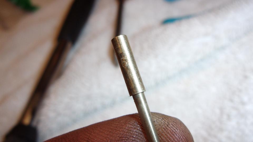 When the caliper was done we disassembled a pair of carburetors to see what parts might be needed to order for rebuilding them. When I can't read the small numbers on the needles, I take a close-up picture with the macro lens, and blow it up larger than life for viewing. In this case the 1500 style carburetors had the correct No. 6 needles for the 1600 engine they we found on, so someone had done the right thing in the past.