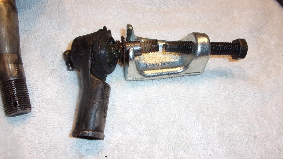 Last official chore for the day was to try out the new $13 tie rod end puller from Harbor Freight, which of course paid for itself on the first use. We were able to salvage an original style (high quality) tie rod end, only needing cleaning and a new rubber boot to be installed before re-greasing.