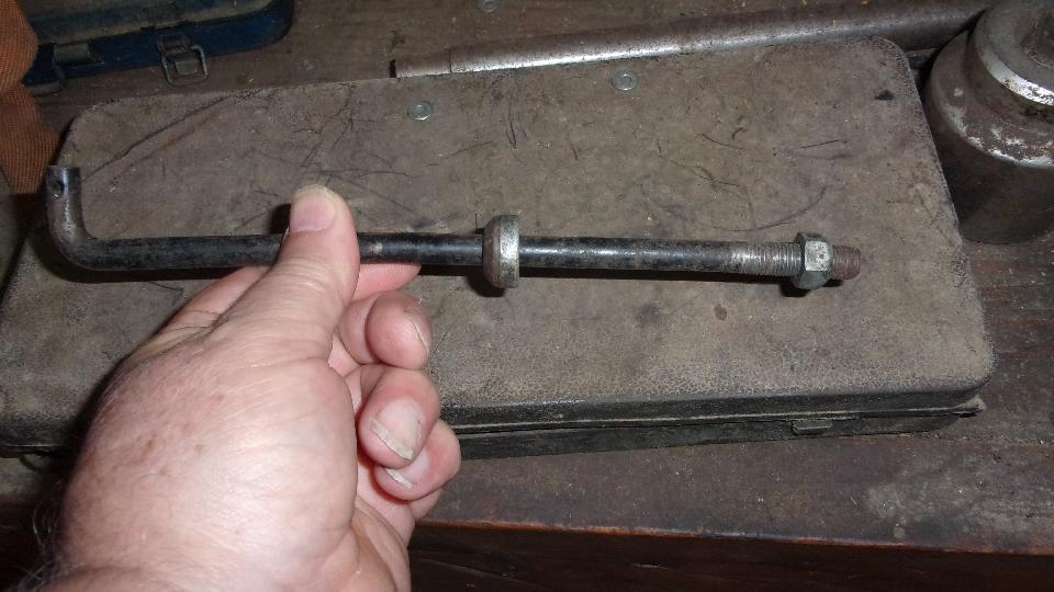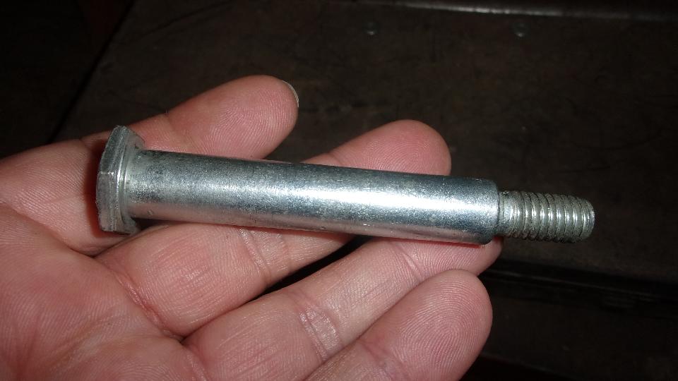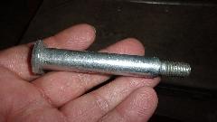 Looking around the shop, the first find was a 1/2-inch axle bolt. We could live with the coarse thread, but the shank needs to be 5/8". Next find was a 3/8" fine threaded lifting link. The idea here would be to find a 3/8" x 5/8" tube to slip over the link and weld in place to make the larger OD shoulder bolt, but we couldn't find the.