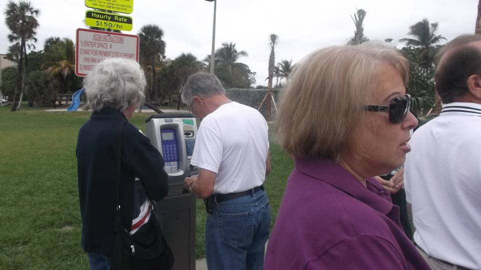 The weather was damp and occasionally a bit dribbly this morning. To add insult to injury there was a pay-for-parking public lot with only a couple of electronic meters to serve hundreds of parking spaces. Here the credit card reader didn't work, so the machine was wasting lots of time as a dozen people were waiting in line, and one guy was on the phone to the cops to lodge a complaint. When the machine rejected my credit card I started stuffing it with quarters. $1.50 for an hour, and we needed two hours. After feeding it a dozen quarters it registered three hours. Go figure. Did I tell you I hate big cities?