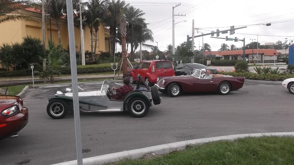 Happy New Year! Yes we got lucky and found the starting point in Davies along with half a dozen other cars. The cruise from here turned out to be a 35 mile shot up the interstate to a breakfast appointment with the Gold Coast British Sports Car Club. So we took the interstate down to Davie so we could take the interstate back up to Lantana? Just for breakfast? And we missed a New Years eve party and a New Years morning tour on the west coast. Must have the priorities wrong. Our other tentative appointment in the area was canceled when an MGA wiper motor problem was resolved before we got there. At least there were some nice British cars here.
