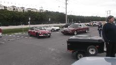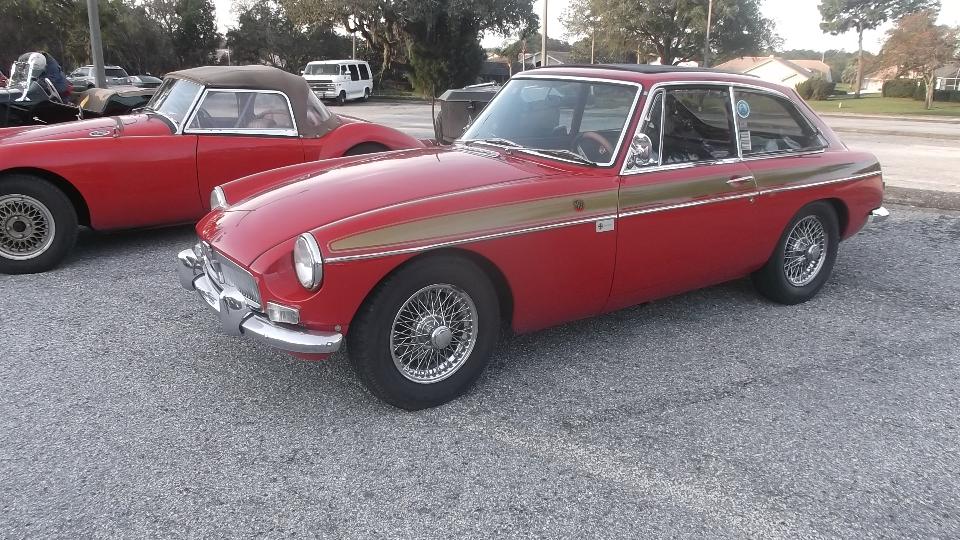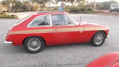 The collection of about 15 British cars in the parking lot was fun (ignore the Ferrari). The car that caught my eye here was the classy looking MGB GT with stripes from the European edition of the Golden Jubilee model.