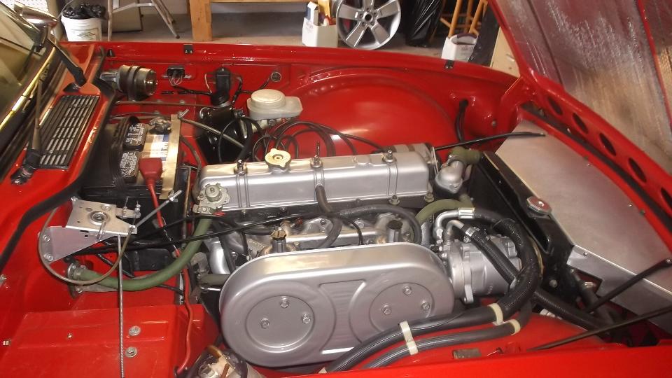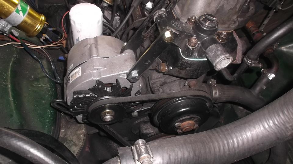 Install rocker shaft assembly, torque head bolts, adjust valve clearance, assemble manifolds (and the Weber carburetor). Interesting alternator brackets (but it works okay). Top off the fluids, and it runs (but runs better after connecting the brake booster hose). Ignition lamp glows brighter with increasing engine speed. Oops, looks like the alternator (still under warranty) is going back to Autozone tomorrow. "It's always sumpthun". Time for dinner and some club chat, then BBS and email and some tech Q&A, and posting these photos and notes.