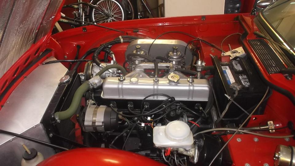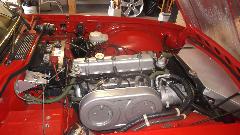 Did some work on the TR6, but too busy to take pictures. I started by pumping out a few gallons of evil smelling stale fuel to empty the tank, then transferred a gallon of fresh fuel from my MGA to the TR6. Switching on the electric fuel pump resulted in a gusher from the front carburetor. Remove air cleaners, and remove front carb. Remove bottom cover, float and float valve which needed cleaning. Reassemble all, and then it ran on three cylinders. Good spark on all six, no fire in the rear three. Remove rear carb, remove bottom cover, dig sludge out of float chamber, clear clog out of bottom of main jet. Clean and reassemble, and now it runs on all six. Running rich, but I don't have the special tool needed to adjust mixture on the Stromberg carbs, so final carb tuning will wait for another day.
