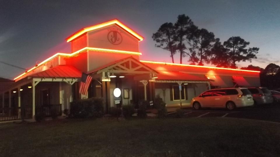 Had some driving to do today like 6-1/2 hours going from Kissimmee to Panama City Beach (way up in the Florida panhandle) for 5:30 pm dinner meeting at Triple-J's restaurant with Bay British Cars. No one told use there was a time zone change in the panhandle, so we arrived an hour early (in T-shirts and shorts with warm weather). Well at least we weren't late. Nice meeting with about 30 people. Could be some things to do here, so we may have to return next week. Get another picture on the way out, starting to cool down in late evening.