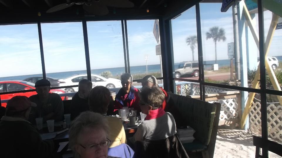 we arrive 20 minutes late for the 1:00 pm lunch (and a bit tired). All is well with the world but we are now overdressed as it is back to T-shirt and shorts weather. Seems we now have our choice of climate in Florida. Say hello to 25 members of the All British Car Club of Volusia County Florida, meeting at The Golden Lion in Flagler Beach, FL.