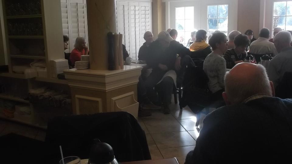 At least it was a decent breakfast, but we only got to chat with a few people before it was breaking up. Then we're outta'ere. The first McD's near the expressway has no electrical outlets for the chargers, but a friendly customer clues us in that the Publix grocery store across the street has a sit-down deli with free WiFi and plenty of outlets. Exit stage left. After catching up we may need a little more sleep before our next venture.
