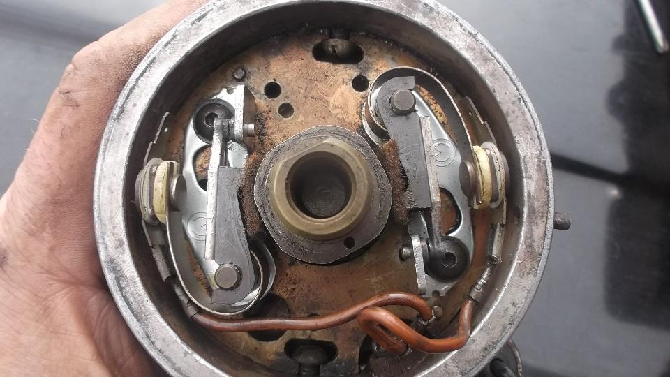 Maintenance day. MGA gets another oil change, filter and lube. The new(ish) tires are looking great after 6400 miles (no more wheel bearing or alignment problems). Spark plugs looking good at a mere 32,000 miles. Mallory Dual Points distributor looking good at 255,000 miles with 32,000 miles on the points and rotor, and 224,000 miles on the cap. Took it for a good long run, and it runs well. Apparently tweaking the points did some good.
