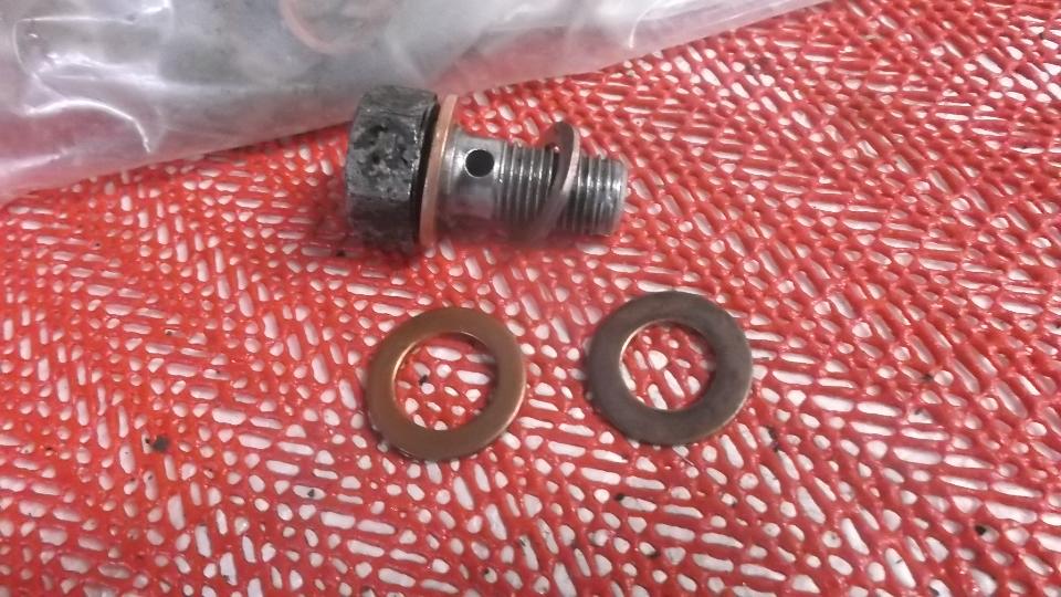 The clutch slave cylinder and hose installation went pretty much as planned, aside from having to pull a copper sealing washer out of my trailer because the old set didn't have it. Then lots of grief trying to bleed the clutch hydraulic circuit. Lots of fluid going in the top, lots of air coming out the bottom, and no pushrod motion at all. That fluid had to be going somewhere. Investigation up top reveals the banjo fitting on the clutch master cylinder had the copper washers installed wrong, so fluid was pouring down onto the floor mat and carpet. Bummer. I pulled a couple more copper washers from the magic trailer, and after a bit more struggle the banjo was sealed. Yeah, but still not enough clutch slave travel, obviously still some air trapped in there somewhere.