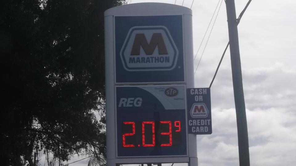 For a week or two now I have been asking navigator what are the odds of gasoline falling below $2/gallon, and he always said, "No way". Lowest we had seen so far was $2.08.9/gal. Well, today would be the day. First on US-41 near Lutz, FL, we spot a new low price of $2.03.9/gal at a Marathon station. Then a few miles farther south on US-301 we found a Wawa station with fuel at $1.86.9/gal. Not only a new low, but more than $0.20 lower than we had seen the day before, and I don't recall seeing gas below $2 in the past ten years or so. And it wasn't just one place, as we found several more stations with price below $1.90/gal over several miles span.