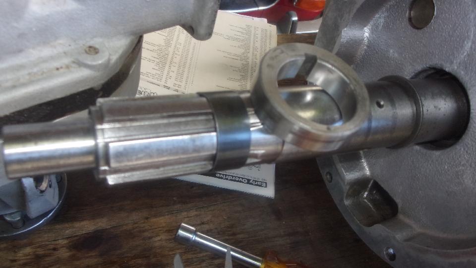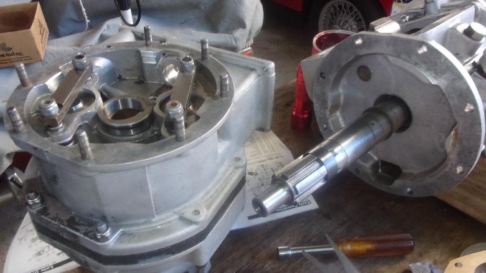 Hey, it's Friday, so let's get back to tech Central and see what's going on. The first item was final assembly of the overdrive unit to the MGB gearbox. After waiting a week for delivery of an overdrive gearbox gasket set, the set included the OD bottom plate gasket, but did not include three circumference gaskets for the OD outer case. So there was a pause to make some paper gaskets. Then a question came up about the shaft key for the oil pump cam. Nice keyway in the cam, but no keyway in the shaft. Once we verified correct location for the cam on the shaft, it happened to have a shallow drilled hole where we expected the keyway in the shaft. Conclusion is that this needs a small steel bearing ball to serve as a shaft to cam key. I don't know if they found a suitable ball bearing yet, but at day's end the OD unit was still not installed.