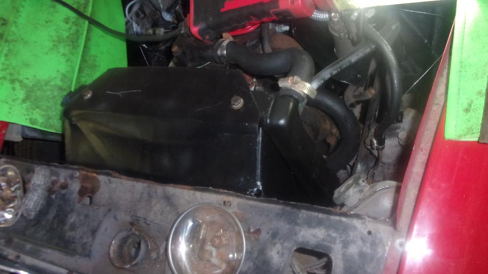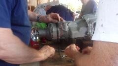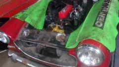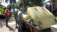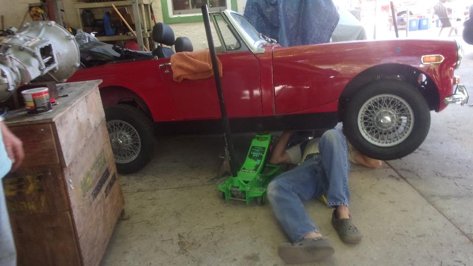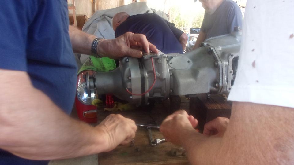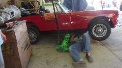 Then a couple guys pulling the old radiator out of the Midget and installing a new one. Must be getting to be "old hat", since they pulled the same radiator to install a new water pump last month.