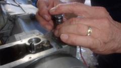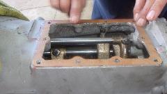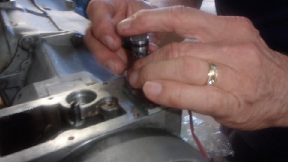 Back to Tech Central to see what the guys are up to this Friday. The first work bench held the continuing efforts on the late model MGB overdrive gearbox. Installing the solenoid control that pushes the tiny steel ball to control hydraulic flow. Also installing the hydraulic valve, which shuttles to operate the overdrive clutches, when triggered by the solenoid. Closing the covers on the O/D unit and on the side of the main gearbox. And finally having to remove the O/D unit again, because the steel ball on order to serve as the oil pump cam key had not arrived yet.