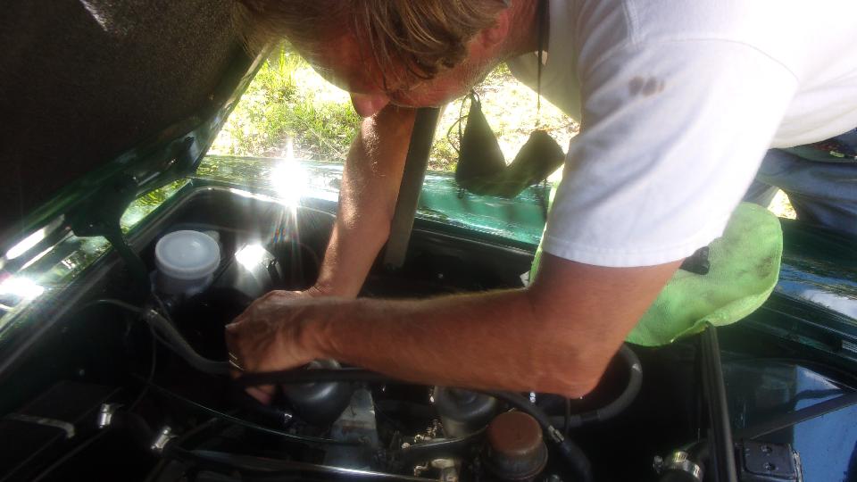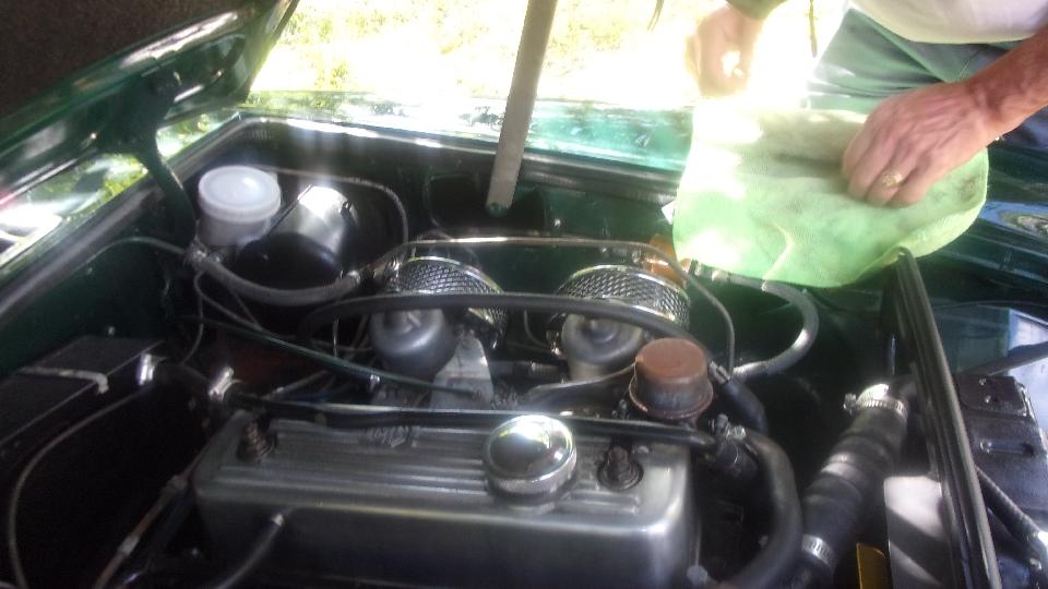 One guy fixing a misalignment on one of his air cleaners on an MGB, where the outer screen didn't want to tuck