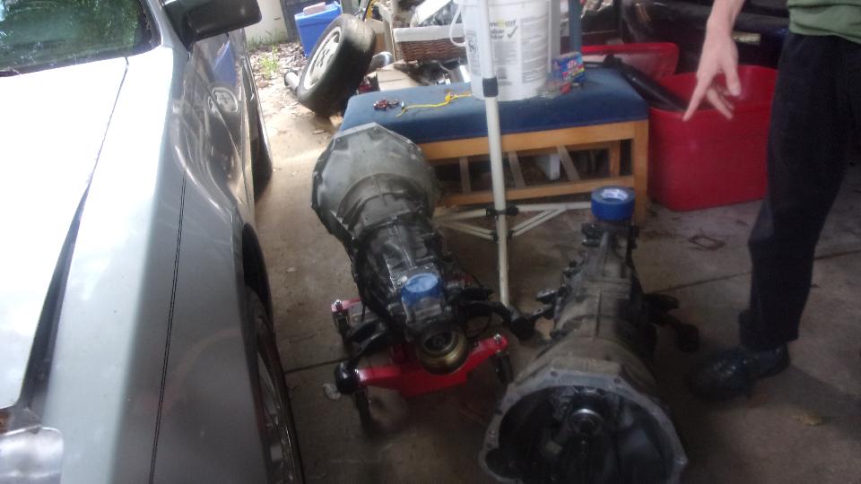 Good Friday Morning at Tech Central. Somebody has been working when I wasn't here. During the week Kyle Vanbuskirk (the young guy) and a couple helpers were pulling the V6 engine out of his Nissan 300ZX (one of them). The red 300ZX has been sold (but still here). The engine and gearbox out of this silver car will go way with the red car. The second gearbox going into the silver car came out of his third car (parts car). And one of these cars is suppose to get a Corvette engine stuffed into it.