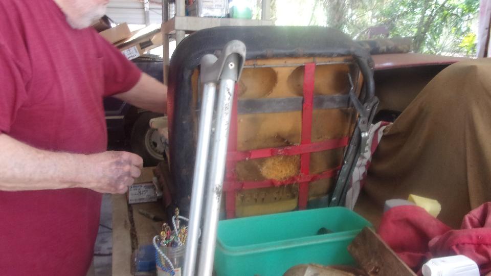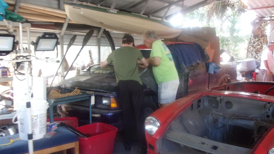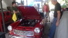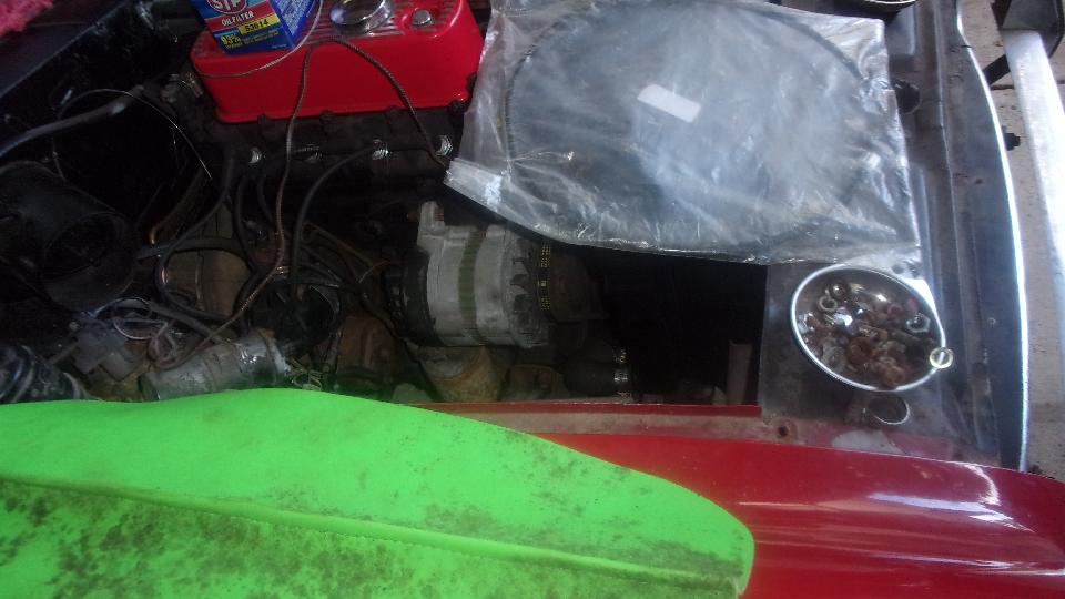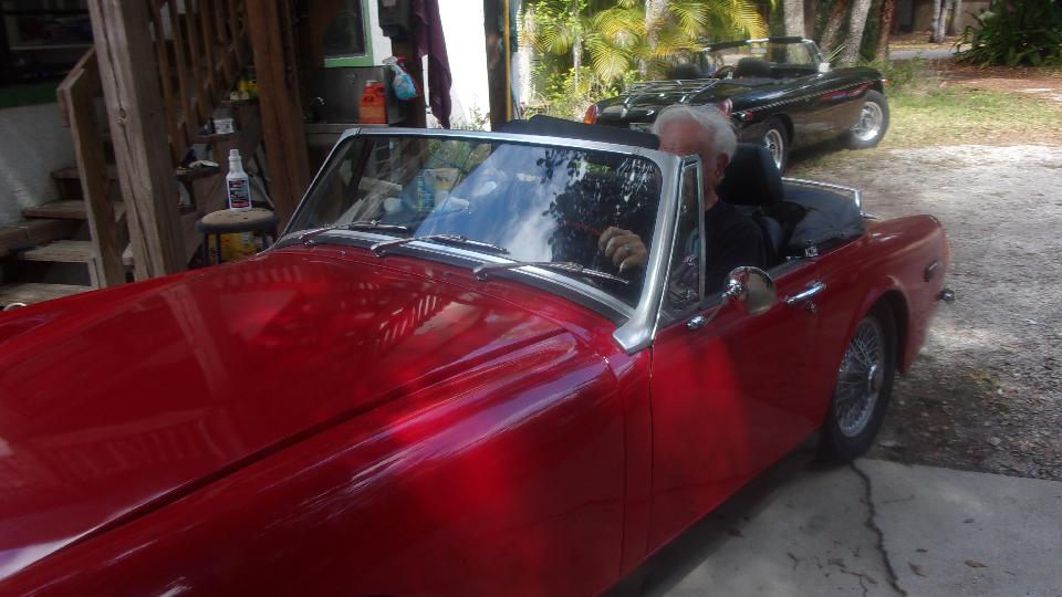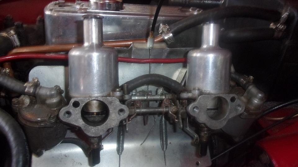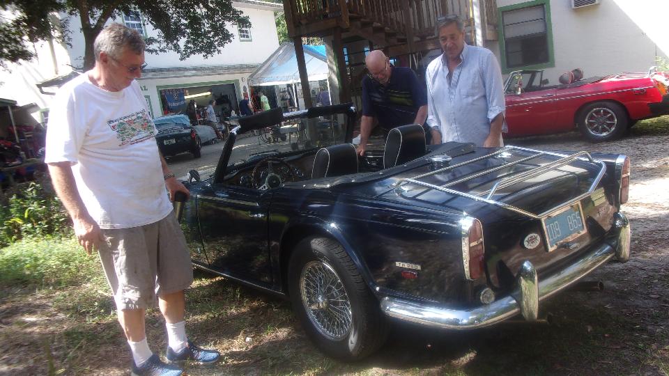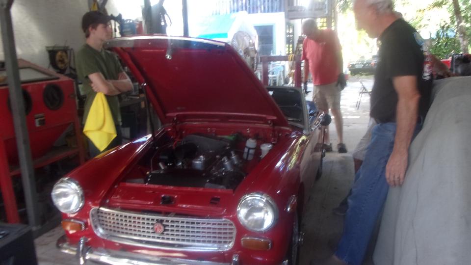 Just checking to see if a new oil filter was the correct part to fit the MG Midget spin-on mounting. Take a few minutes to scratch and sniff, checking out dual Weber downdraft carburetors on the TR6. And at least one MG Midget seat was about to be pulled apart to replace the bottom cushion. Enough fun for one day.