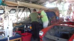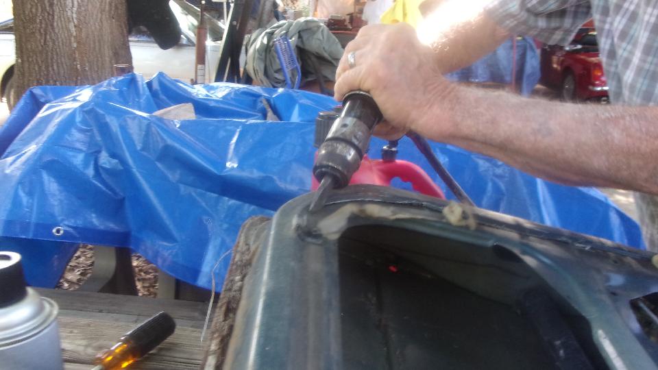 Another MGB door is being prepped for a race car by completely removing the guts. Not long to remove the interior trim panel (good for the trash). Then grab an air chisel and cut all the way around the perimeter of the inner panel. Then the windscreen was lifted off of the MGB wannabe race car, with some consideration to making both the windscreen and a removable hardtop quick change.