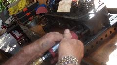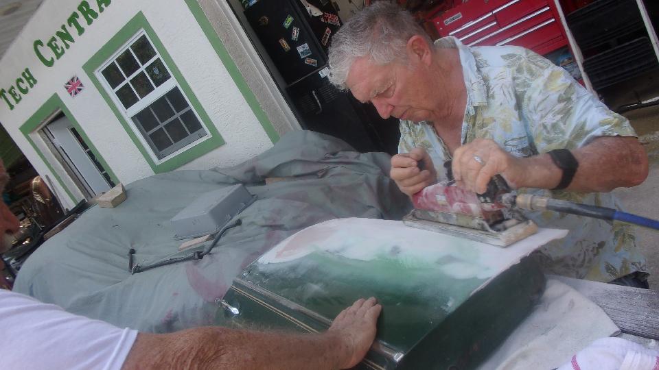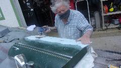Porting of the MGB cylinder head is progressing, at about one port per week. Last week's MGB door rust repair was nearly finished, flat sanding, and ending in primer by day's end (with the owner's big thumb print in the primer paint). And there was an Infinity people mover getting rear drum brake self-adjuster mechanism freed up to actually work.