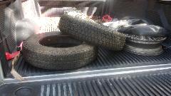 The green MGB (nice daily driver car) has a door off today to replace the lower edge of the outer skin for rust repair. That's going quite well by mid day. A pair of tires were brought by for appraisal. They turned out to be Nankang tires, so best advice there is to see how far you can throw them.