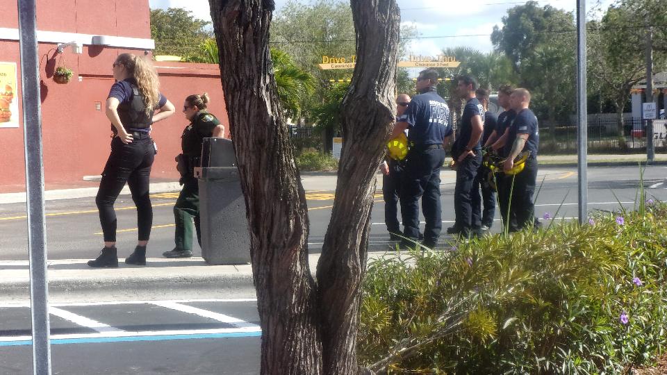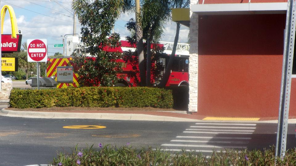 One ambulance, one county sheriff patrol car, at least six fire chief cars (can't imagine they had so many of those). The last picture tells the real story, lots of people being paid to wait. We were told it was a small electrical fire under a hot grease fryer, noting we could see or smell, but needed to evacuate the building anyway. We saw maybe two or three firemen go into the building. One soon came out and stowed his breathing apparatus back into the engine. Another came out long enough to get a fire axe. If they were going to rip something apart, I suppose this place would be closed for the rest of the day, so we were soon off to a different WiFi spot.