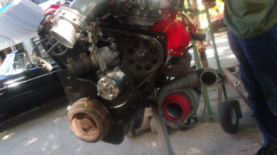 Nice design with single overhead cam(s), opposing rocker arms, hemi-head valve layout, and the turbocharger. Lotsa power.