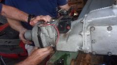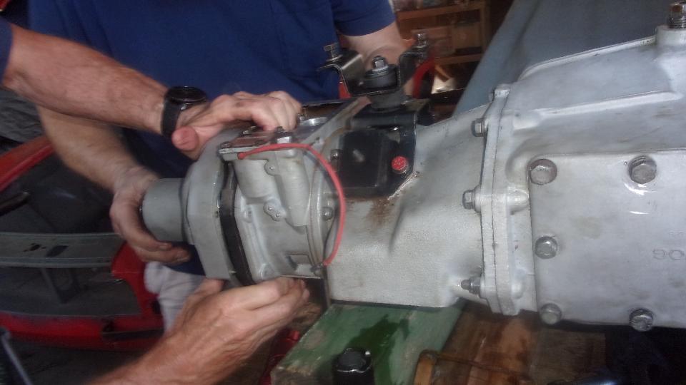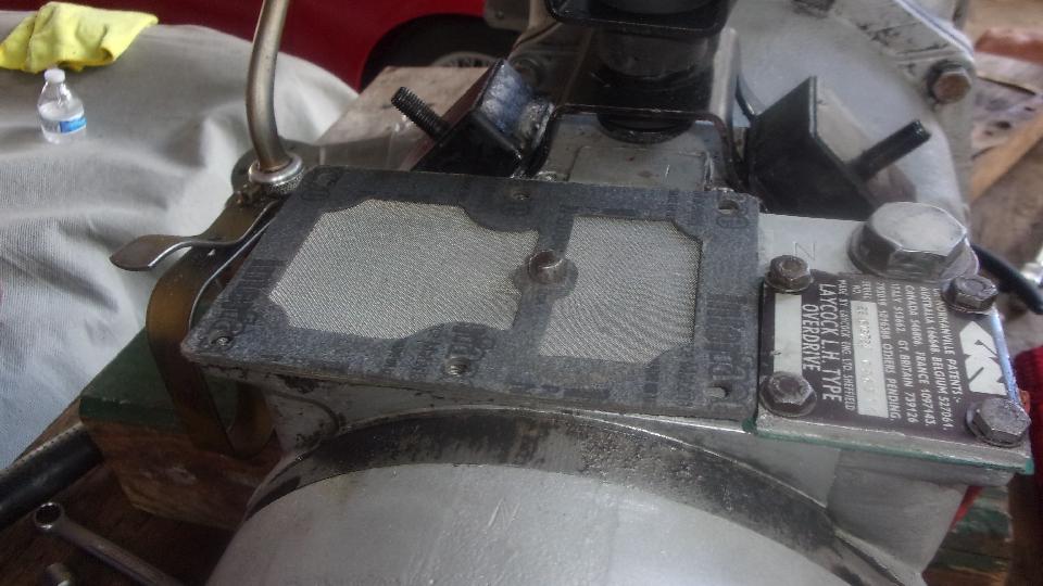 And the guys were finishing up assembly of the late model MGB overdrive gearbox (we hope). Some problems getting multiple splines to align, and the oil pump roller plunger was 180 degrees out and interfering on one side of the roller carrier. Those little issues solved, it was on to installing the sump screen,