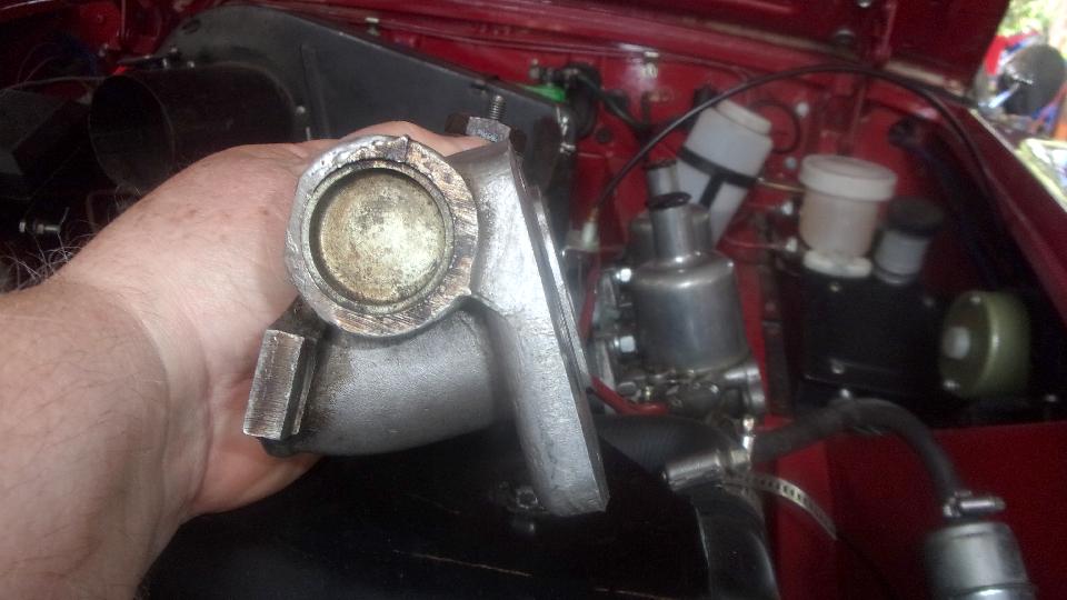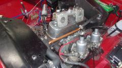 The MG Midget that has been under restoration for two years was temptingly close to a test drive. When the bonnet landed on top of the carburetors it was necessary to change the intake manifold for one with a bit less camber angle from an earlier model car.